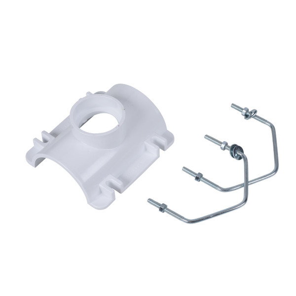 Saddle is solvent welded to the existing line and secured with metal V-bolts, washers and nuts provided in the kit
