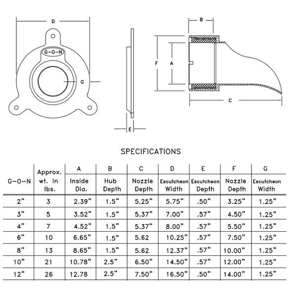 • G-O-N Nozzles & Bird Screens available in sizes from 2" to 12"