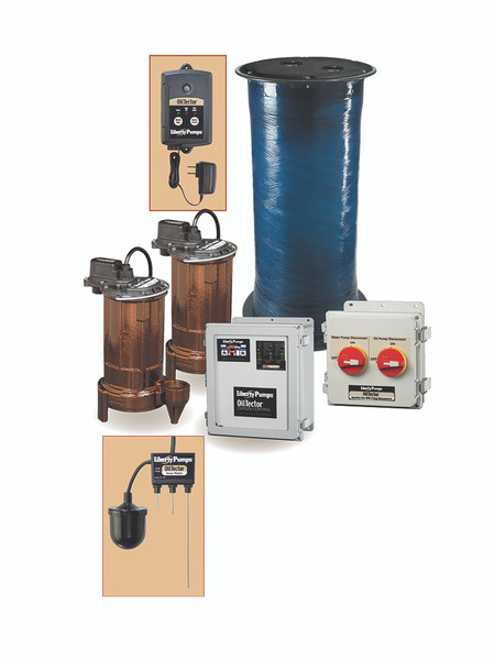 Duplex pump system detects oil and water allowing for diversion of oil to a separate tank via dedicated oil and water pumps. For use in elevator pits, vaults and other areas requiring the control of oil discharge from sump water.