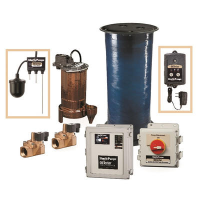 Simplex pump system detects oil and water - allowing for diversion of oil to a separate tank via automatic electronic valves. For use in elevator pits, vaults and other areas requiring the control of oil discharge from sump water.