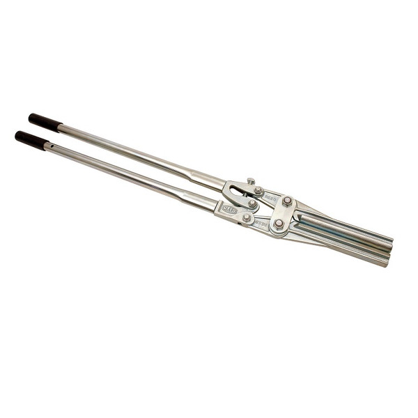REED's Standing Shut-Off Tool compresses 3/4” to 1” PE plastic tubes to stop the flow of water. The shut-off tool uses 30” handles to develop a clamping force in a manner similar to a pair of bolt cutters. The long handles make for easy shut off from above the ditch with a chain to hold the tool closed. Not intended for gas service lines.