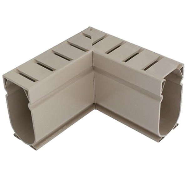 Non-directional 90 degree angle to be used with Stegmeier Deck Drain.