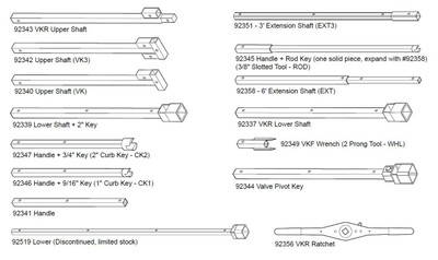 Quick view Reed Manufacturing Reed VK6KIT Adjustable Valve & Curb Key Kit 02368 Compare $657.91 Reed Valve Keys are built for strength and durability. Upper shafts are made from heavy-gauge, mechanical steel tubing. Compact size fits in crowded utility trucks, behind pickup seats, or in car trunks. Closed Length: 45" Open Length: 151.6" Kit... Add to Cart Add to Cart Add to Wish List Add to My Wish List Create New Wish List